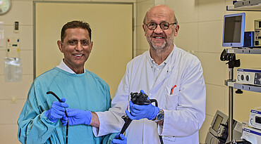 Eine besondere Stärke der Abteilung ist die intensive Kooperation mit der Viszeralchirurgie unter Chefarzt Dr. Jochen Heger. Dies findet Ausdruck in einer ungewöhnlich gut funktionierenden Bauchstation mit großen Vorteilen für die Patienten (konservativ und operativ im gleichen Bett unter gleicher pflegerischer Betreuung). „Diese gute Zusammenarbeit entspricht der Entwicklung von Gastroenterologie plus Bauchchirurgie hin zur ,Viszeralmedizin‘, wie von den Fachverbänden auch gefordert. Dr. Kasims besondere Erfahrungen in interventioneller Endoskopie führen diesen Weg weiter“, unterstreicht Dr. Niemeyer.